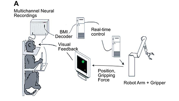 从猴子脑中延伸出的电极,正编织着人类重见光明、重获行动自由的神经网络。